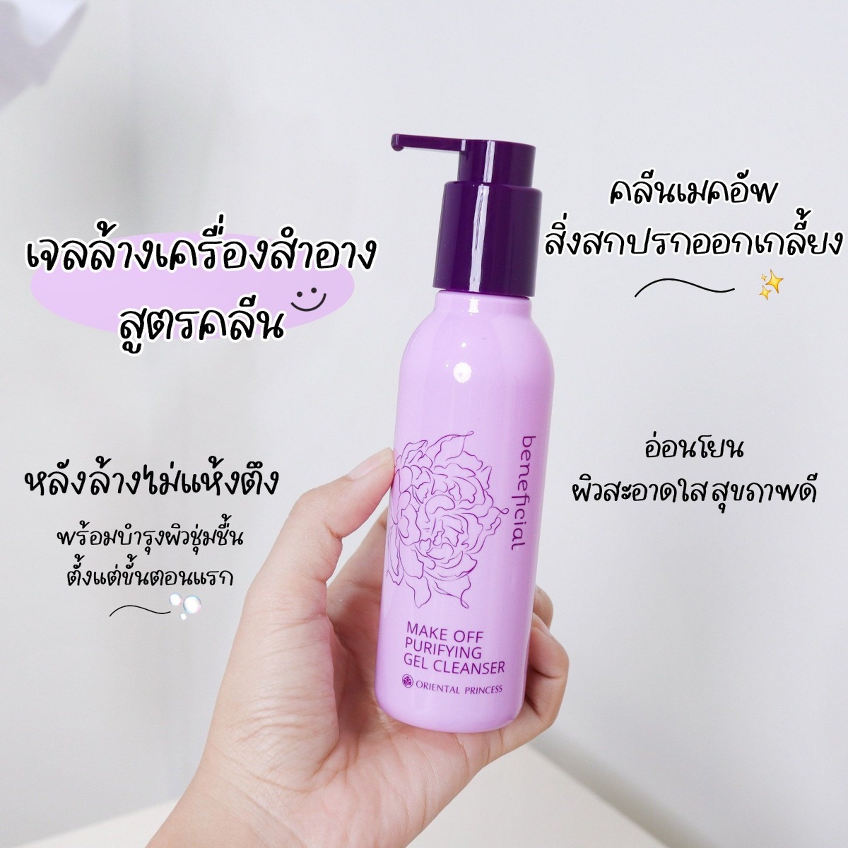 มีของใหม่มาป้ายยา ช่วยคลีนเมคอัพดีมาก อ่อนโยน หน้าสะอาด รู้สึกได้รีเซตผิวสุขภาพดีทุกครั้งที่ใช้ เจลล้างเครื่องสำอางสูตรคลีน beneficial Make off Purifying Gel Cleanser ของ Oriental Princess คลีนเมคอัพสิ่งสกปรกออกเกลี้ยง คือโคตรดีเลย ผิวไม่แห้งตึงพร้อมบำรุงผิวให้ความชุ่มชื้นผิวนุ่มแต่หน้าไม่มันนะ