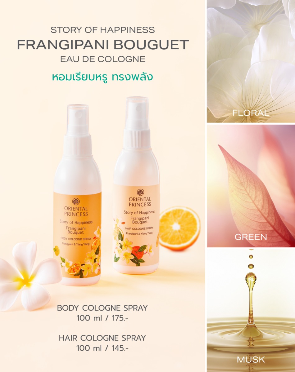 โคโลญจน์สเปรย์ฉีดผิว กลิ่นหอมดอกไม้และผลไม้อันเป็นเอกลักษณ์ของ Muquet, Ylang และ Pineapple รังสรรค์เป็นกลิ่นหอมสดชื่นแฝงความมั่นใจ อันแสนมีชีวิตชีวา ฉีดได้ทั่วเรือนร่างหรือตามจุดชีพจร เช่น คอ ข้อมือ ข้อพับ ให้คุณเพลิดเพลินและเติมเต็มความมั่นใจให้เรืองร่างหอมฟุ้งด้วยกลิ่นหอมจากธรรมชาติ