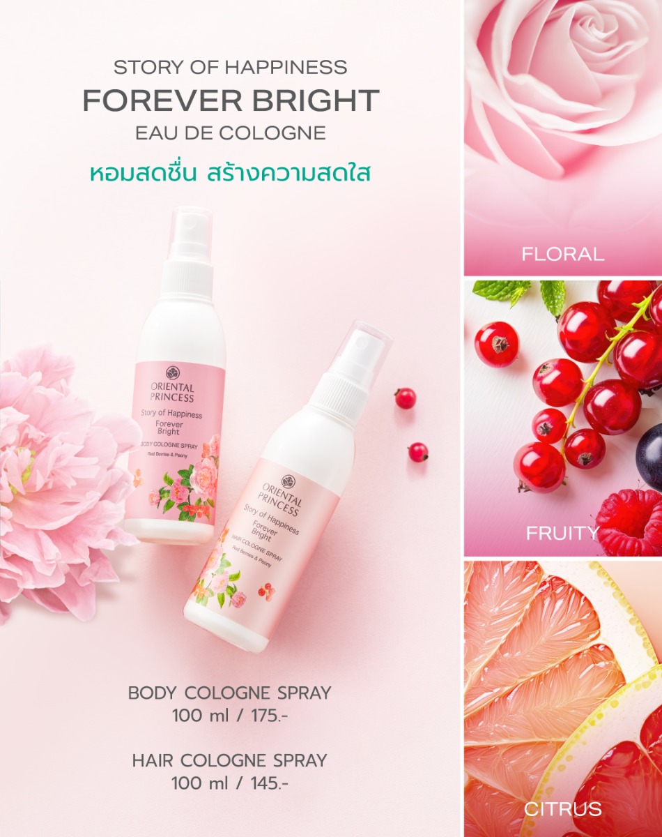 โคโลญจน์สเปรย์ฉีดผมหอม กลิ่นหอมหวานฉ่ำของเบอร์รี่และแอปเปิ้ล กับกลิ่นหอมโรแมนติกจาก Rose รังสรรค์เป็นกลิ่นหอมสดใส ร่าเริงที่ใครๆ ก็อยากเข้าใกล้ ช่วยลดกลิ่นไม่พึงประสงค์จากมลภาวะต่างๆ ไม่ว่าจะเป็นกลิ่นควันหรือกลิ่นอาหาร เติมเต็มความมั่นใจให้เส้นผมหอมฟุ้งจากธรรมชาติ